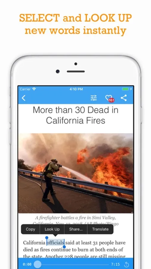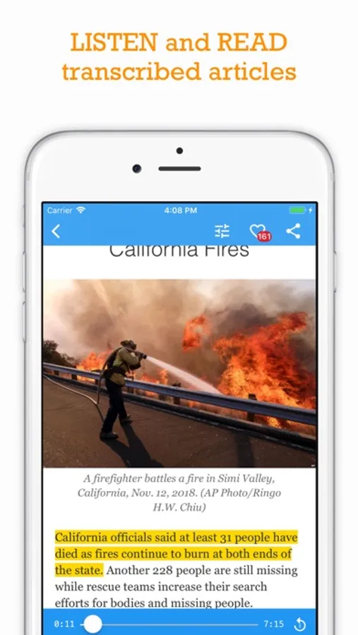 This app is designed to bring you best experience to improve your English. You can read, listen and watch the lessons everywhere with your mobile devices. Even if you are already good at English, you can also learn more about American culture, history as well as latest news in the world.