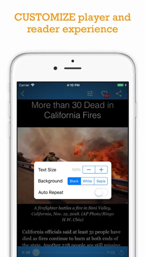 * Transcript tracking: the audio transcripts are highlighted and auto scrolled to help you focus on listening