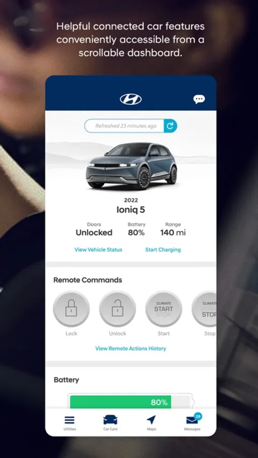 • Access vehicle features with four phone widgets for Remote Features, Parking Meter, POI search and Ioniq EV vehicle