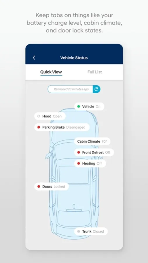 • Check Vehicle Status (supported on select 2015MY+ vehicles)