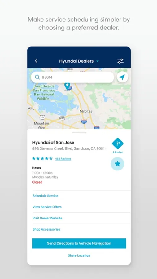 The MyHyundai app makes getting information about your Hyundai vehicle easier than ever. The MyHyundai app allows you to access owner resources, schedule service or connect to your Bluelink enabled vehicle from your phone. Bluelink technology enables and empowers you while you are on the go, giving you access to your Bluelink features from your office, at home, or just about anywhere.