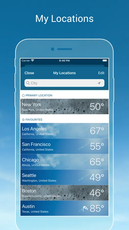 Save any location and see current conditions for any number of global locations in our weather app. Global weather data and rain radar at your fingertips!
