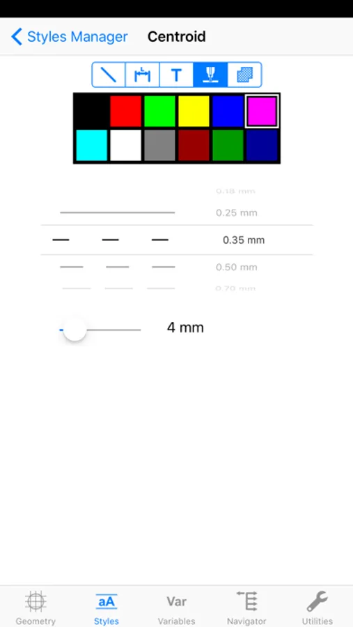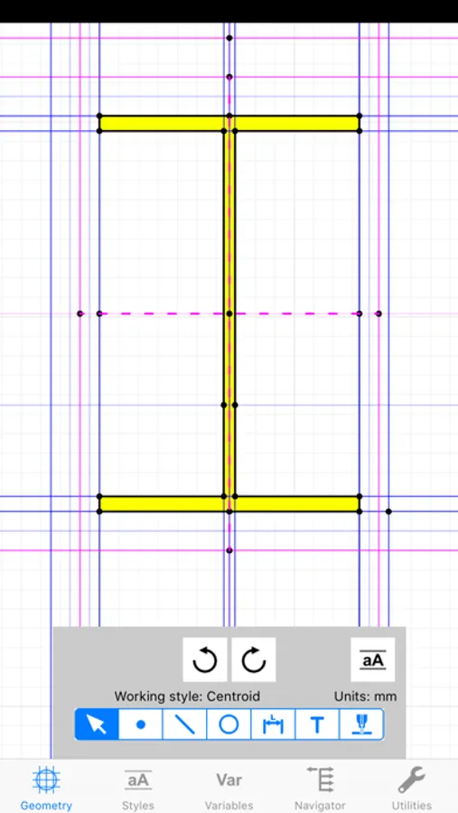 Algernon does not need lots of drawing tools; it just needs one for each kind of element. It can automatically determine what kind of construction to create based upon where the user taps. This keeps the user interface clean, simple, and consistent, without restricting its sophistication. It may seem strange at first to those used to conventional CAD, but we believe it will be found natural after a short time.