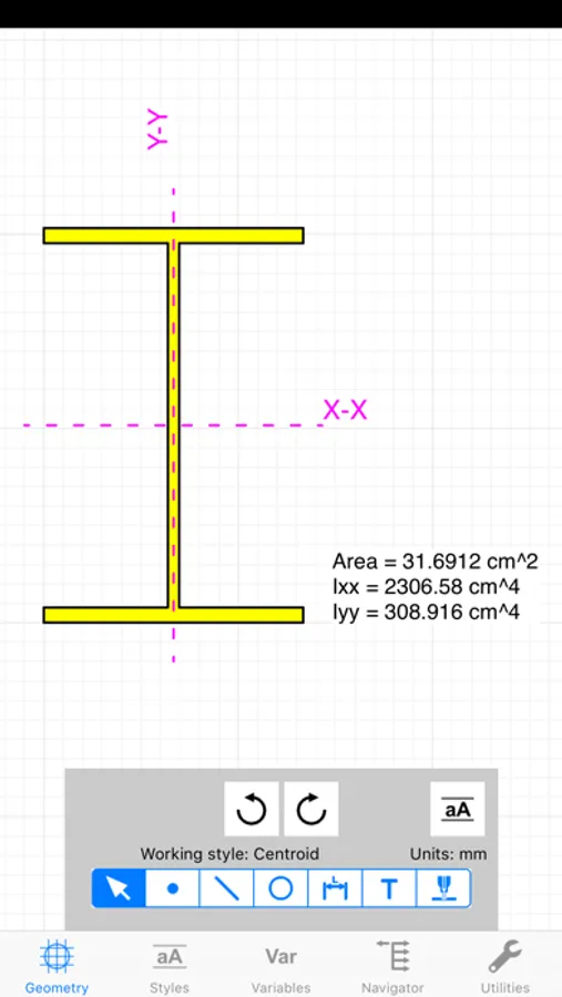 The geometry can be interrogated, dimensioned, inked, annotated with text, and printed (via AirPrint or e-mail export of PDF).