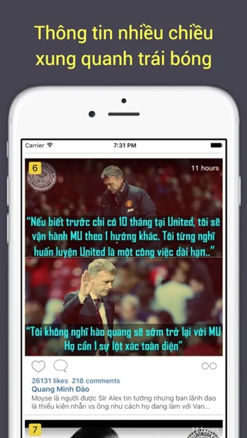 - Theo dõi thông tin nhiều chiều xung quanh quả bóng và những ngôi sao bóng đá qua ảnh với những lời bình luận hài hước :)