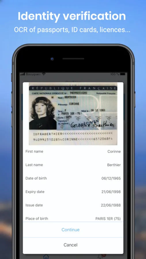 Chekk Mobile features leading edge capabilities, such as Identity Verification across 190 countries with Artificial Intelligence, Machine Learning and deep neural network, enabling document auto-recognition (country & type), Optical Characters Recognition (OCR of document with and without MRZ, even with no network connectivity), video-based Face Matching & Proof of Life (automated or attended, to confirm your identity thanks to triangulation between a video selfie and identity documents), antifraud checks (eg., hologram, data integrity, tampering of document, visual features…), and connectivity to the latest versions of Chekk Portal (for Financial Institutions and others to interact with you, send & verify data requests, manage on-boarding, KYC & AML…), the Chekk Web (for individuals and corporates to securely manage their data and answer data requests, including with features similar to Chekk Mobile and with data pre-population, auto visual mapping of company legal structures & UBOs around the world, delegation to partners and directors…) and the Chekk APIs.