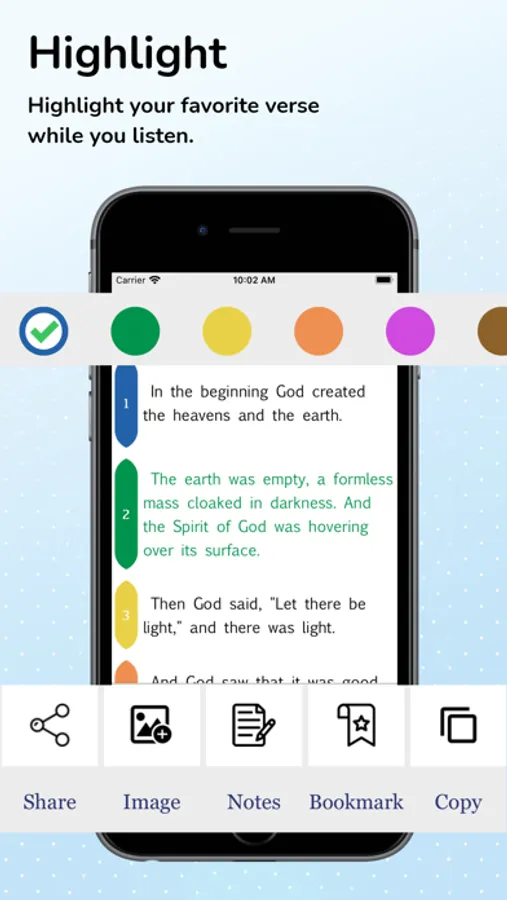 ● Share verses via multiple platforms with ease, like Facebook, Twitter, SMS, WhatsApp, Skype, etc..