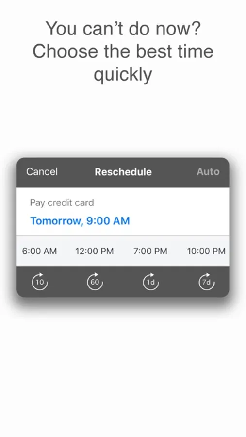- Postpone reminders: 10 minutes, 1 hour or 1 day in fast way