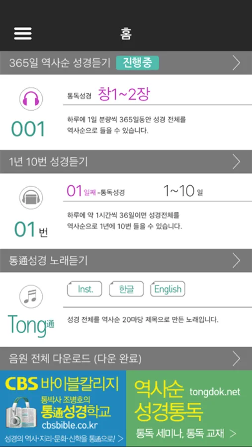 ▶[1년 10번 성경듣기]는 ‘성경과 5대제국’의 저자 통通박사 조병호가 낭독한 역사순 《일년일독 통독성경》 음원 파일을 제공합니다.