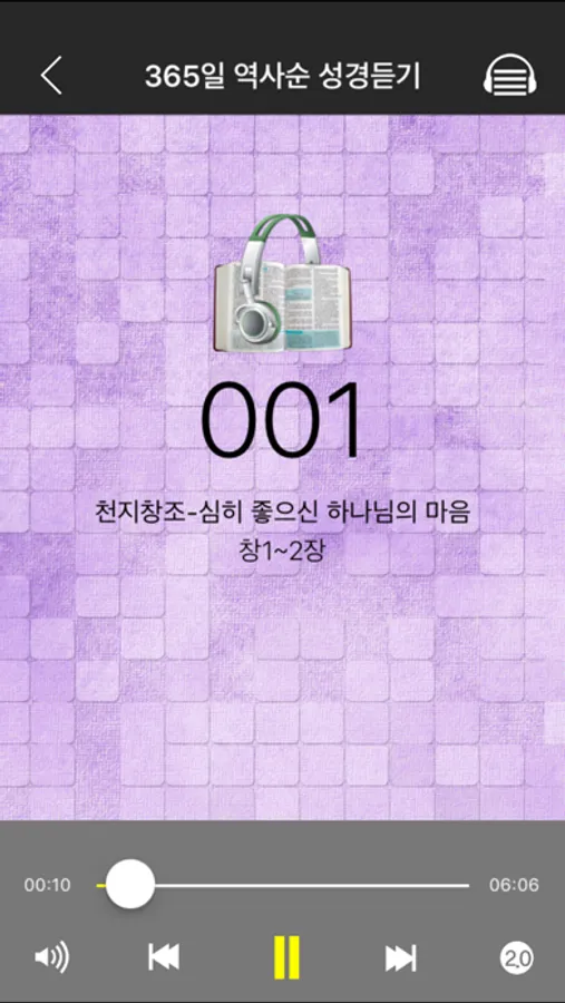 [1년 10번 성경듣기]로 성경 전체를 역사순으로 들을 수 있습니다.