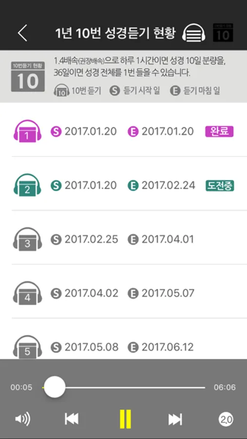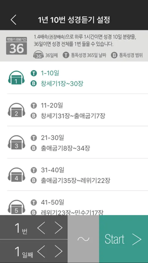 ▶하루 1시간이면 성경 10일 분량을, 36일이면 성경 전체를 1번들을 수 있습니다.