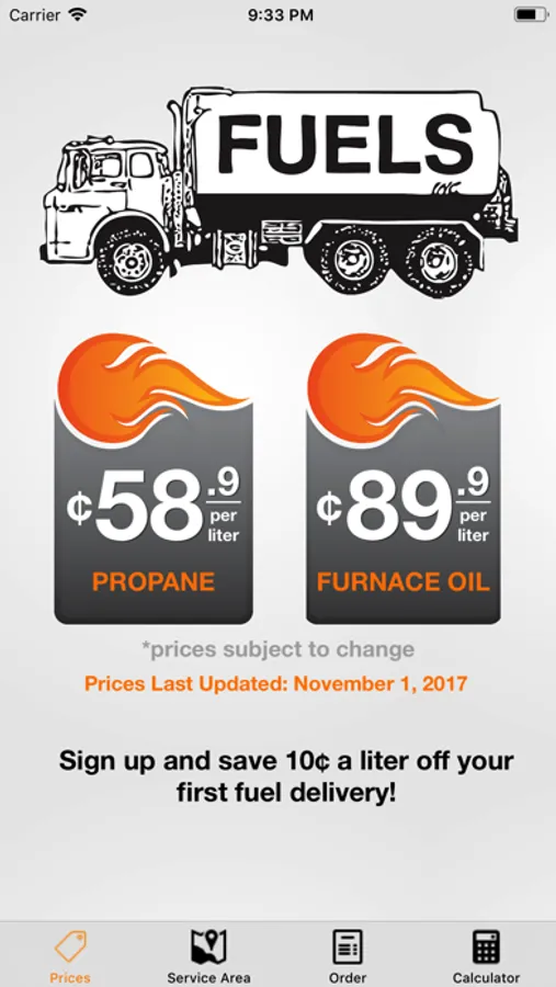 Find out the latest prices from Fuels Inc. for propane and furnace oil.