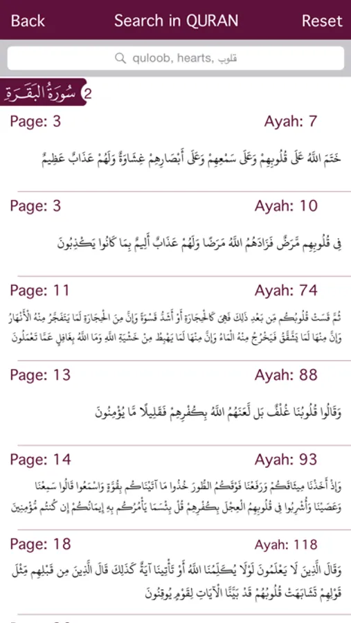 Search in Quran in arabic, english and english transliteration.