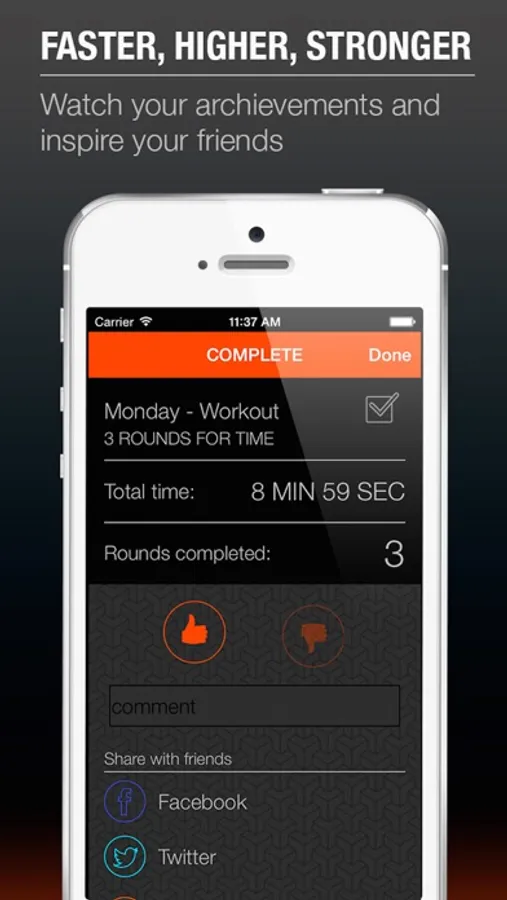 - You can share your achievements on Facebook, Twitter and other social networks.