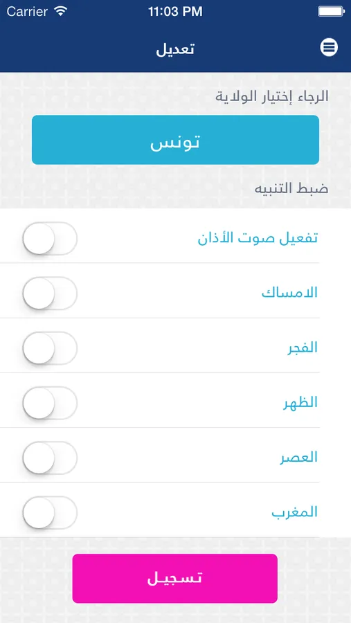 - Horaires des prières et de l'Imsak avec alerte