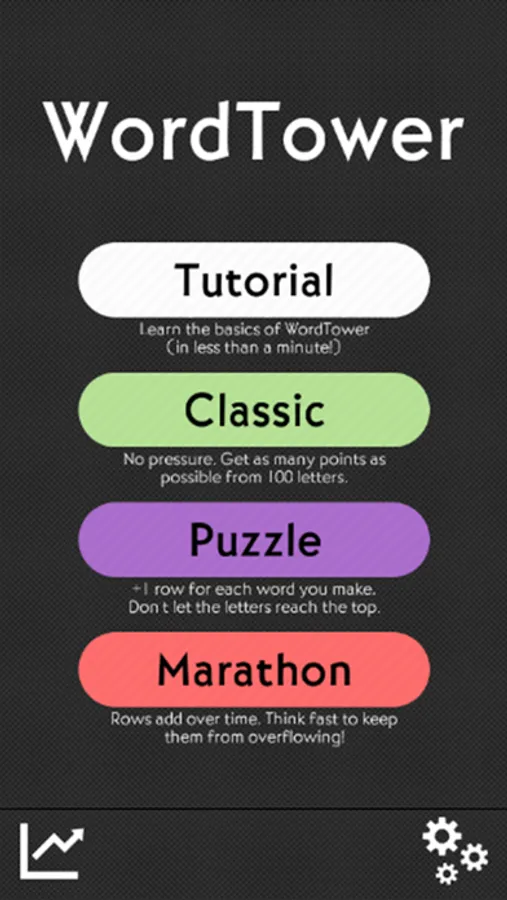 - Tower Mode: No pressure. Get as many points as possible from 100 letters.