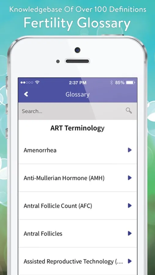 Glossary: A comprehensive knowledge base of over 100 different fertility definitions, including medications, ART terminology and infertility diagnoses. Includes easy to use search function.