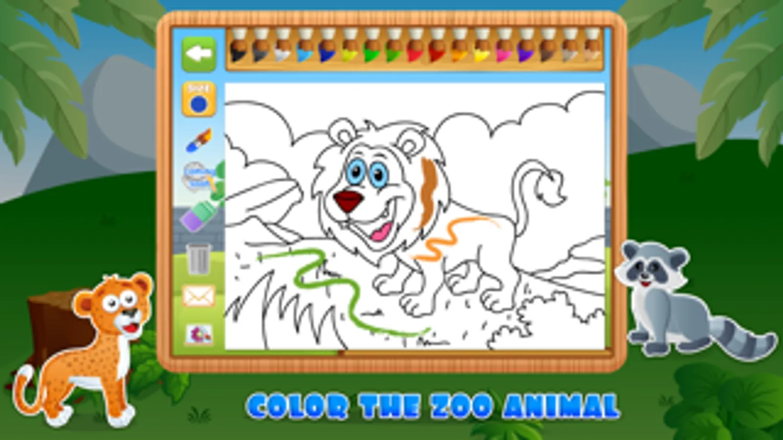 • Coloring mode lets your kids color a picture of their favorite zoo animal