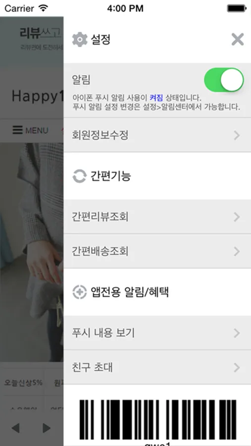 - 매장 근처 푸시 기능이 있는 경우 아래 위치 권한을 포함하고 있습니다.