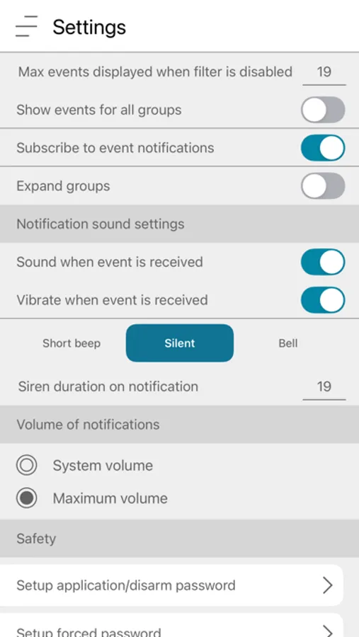 The launch of application and disarming commands arepassword or fingerprint protected (in case the phone is lost or unauthorized access).