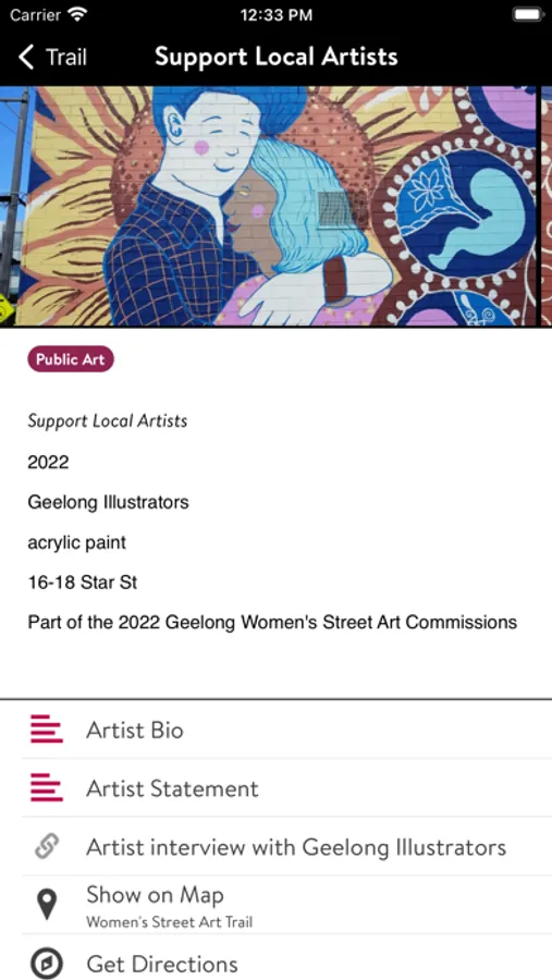 Geelong is home to a vivid and eclectic array of cultural stories and treasures to discover and explore. The maps featured in this app will help you to unearth art studios and galleries, striking public artworks, creative spaces and exciting performing arts locations, and find new ways to connect with the Indigenous and post-settlement histories of the Greater Geelong municipality.