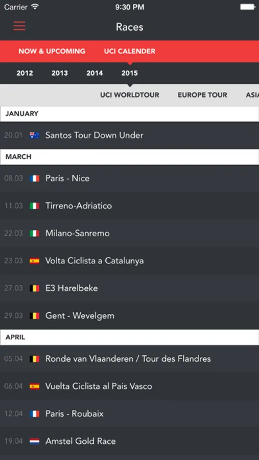 - Check the official UCI calendar