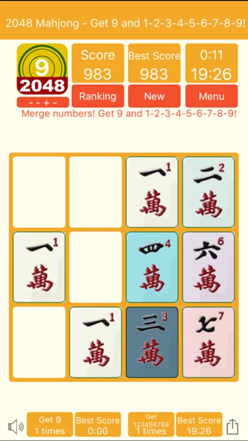 The operation is simple. Just swipe the screen! Same numbers or Mahjong tiles on the swiping direction will be merged automatically.