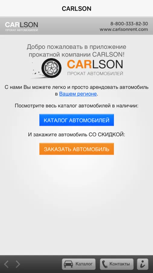 Мобильное приложение прокатной компании СARLSON – это удобный и быстрый способ заказать аренду автомобиля в Вашем городе.