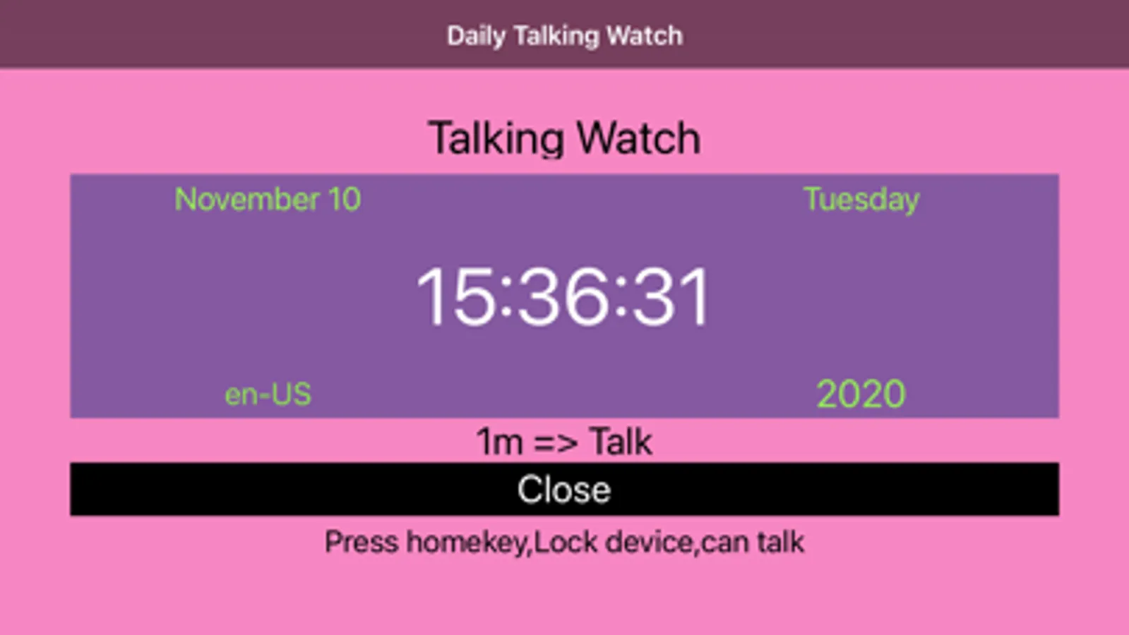 It could talk in more than 20 languages and run in the background status. Each second, we could hear the running sound of the clock if the sound volume is larger.