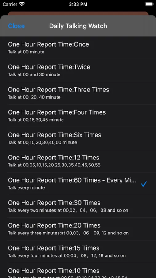 For iOS, Talking Watch in this app could remind us the current time by talking every minute, every two minutes, every three minutes, every five minutes, every six minutes, every ten minutes, every twelve minutes, every fifteen minutes, every twenty minutes, every thirty minutes.