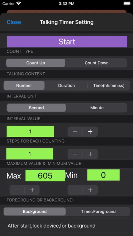 Usually, the selections for talking watch above are enough for our daily life.However, some times, we need some one to remind us every second, every five seconds, every ten seconds or every 30 seconds, in this situation, For iOS, Talking Timer in this app could satisfy our needs. The talking timer includes the count down and count up features. It could talk the number or talk the duration, or talk the current time in hour:minute:second.