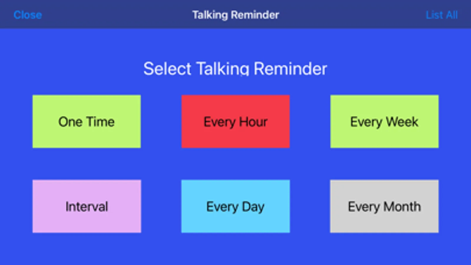 Talking Watch in this app could not talk at the specific time with the specific duration and it also could not talk the text message. In this situation, we will find that Talking Reminder for iOS in this app is very helpful.It includes one time, interval, every hour, every day, every month reminders.It could report the time or talk the text message at the Indict time.