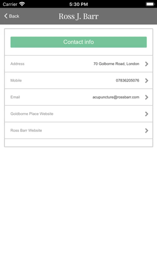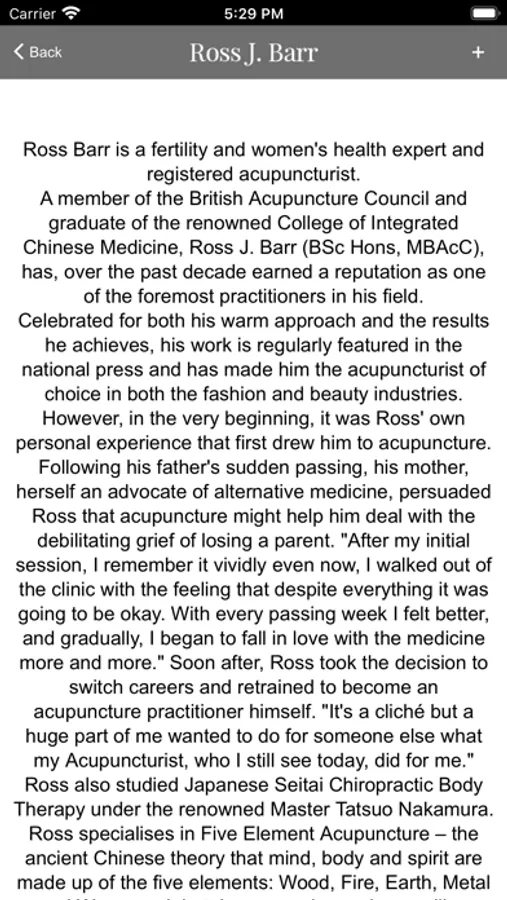 - Access to Ross’ trusted network or recommended Health and Wellbeing practitioners and companies