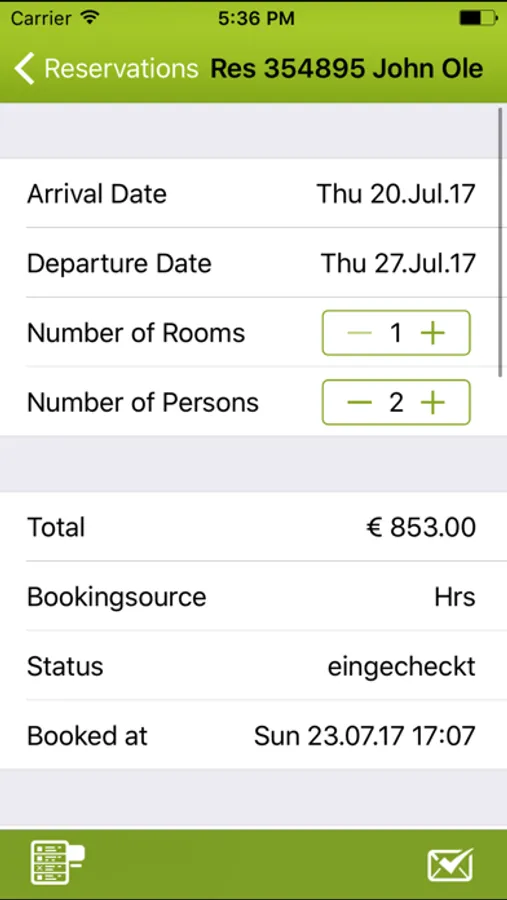 * Retrieve a reservation to modify it: modify room assignments, change prices, append customer data, view customer remarks.
