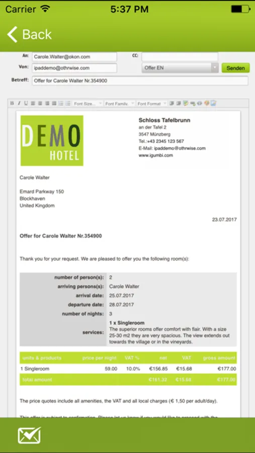* Send email offers and booking confirmations with your own customized e-mail templates