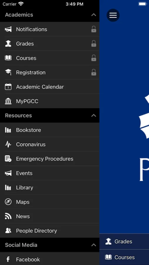 Students can view their courses, see their grades, and access the myPGCC portal.