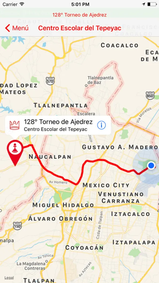 -- Podrás ubicar la sede del torneo y la ruta que debes tomar para llegar