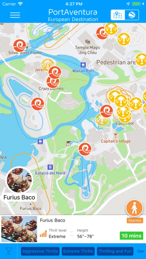 - Customize a GPS enabled map of PortAventura by showing and hiding attractions of interest