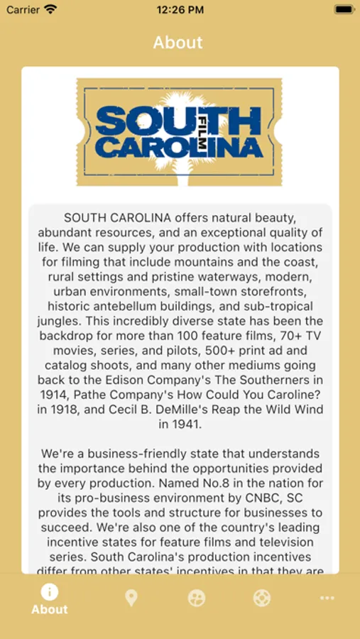 South Carolina is the ideal place for your television, film and media projects. With this app, we provide all the resources you'll need for your production: