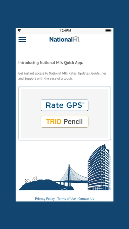 With a touch, National MI’s App provides an easy and quick way to run rate quotes, view updates, receive notifications and find the right person to contact for your MI questions.