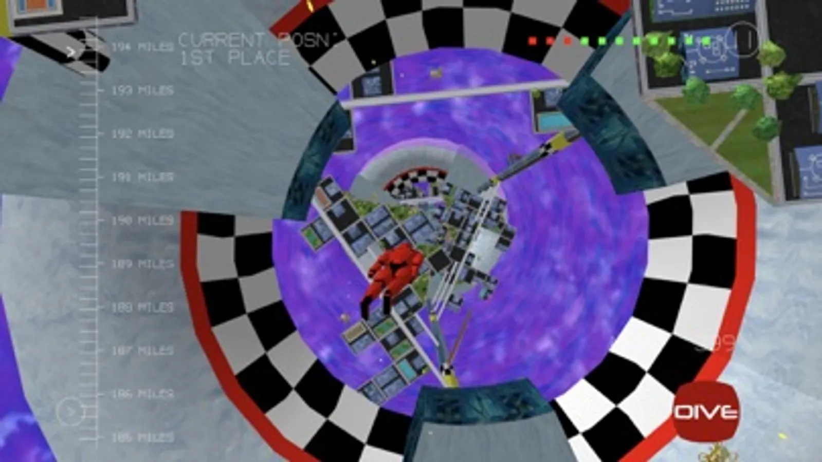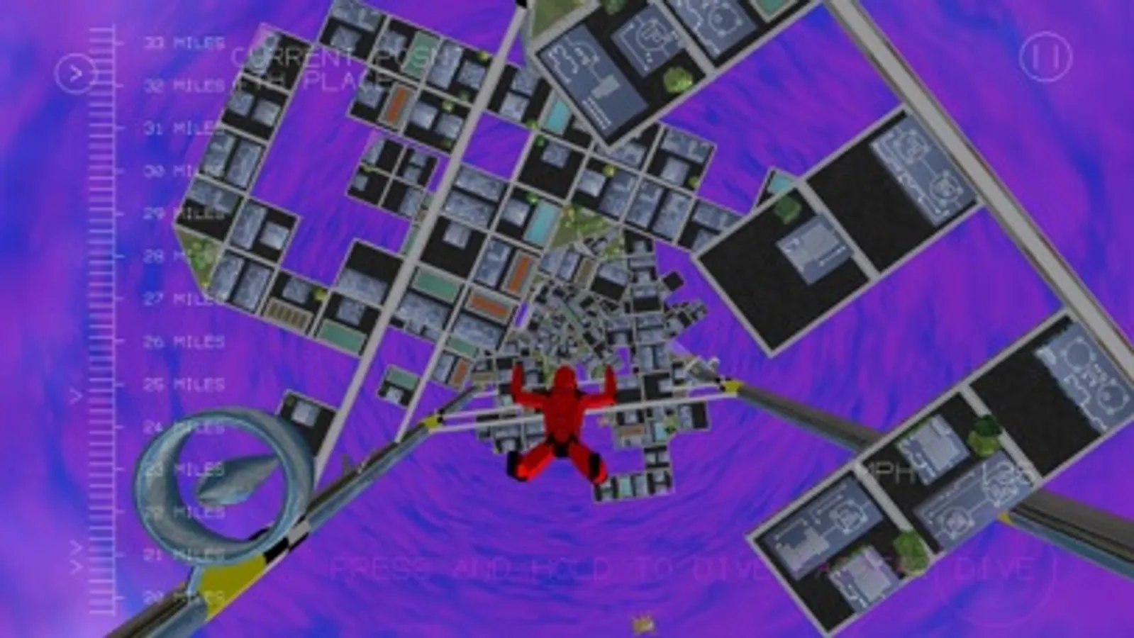 Choose from 3 levels of play - a solo practice dive from just 6 miles up, a mid-level race from 47 miles, or “The Ultimate”, jumping from the city’s low-earth-orbit launch platform, a dizzying 198 miles high. Make it to the bottom in one go, or hit the pause button to save your position for later.