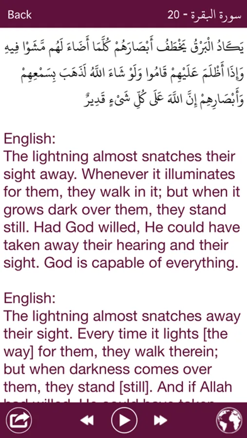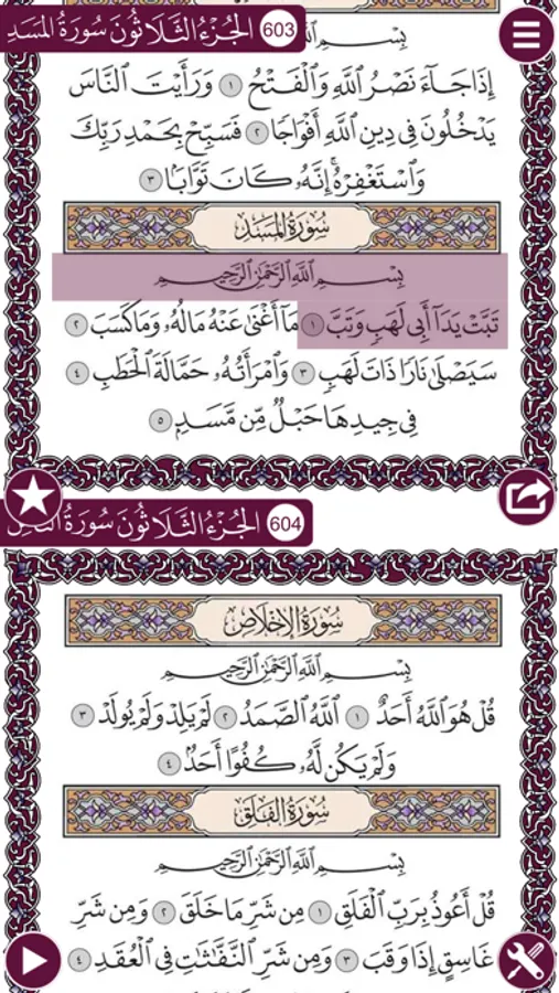 Surah Listings and open from any ayah by pressing ⌽