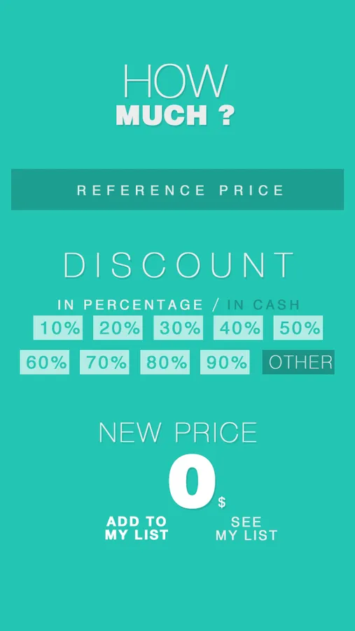 Very easy to use, simply enter the price without a discount, select a pre-register discount or enter a new and you instantly get your new price. You can also manage a list of articles and know the amount of your cart before proceeding to checkout.