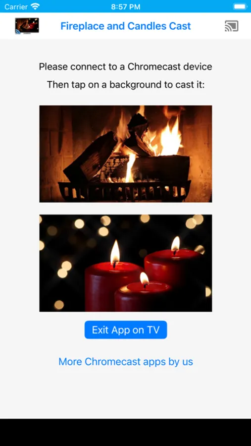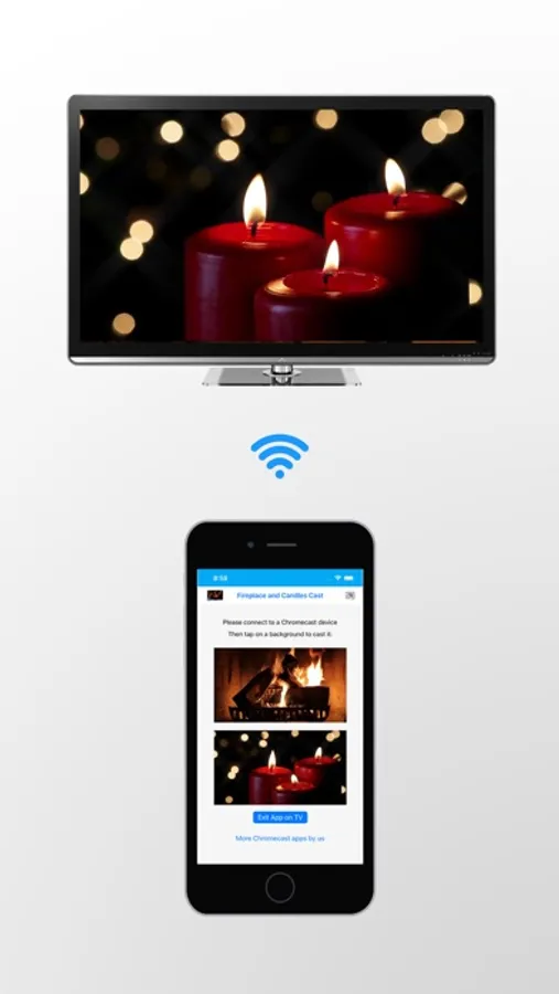 You can choose a crackling fireplace or romantic flickering candles as the live background for your TV (that has a connected Chromecast device). You can select the background with your iPhone or iPad.