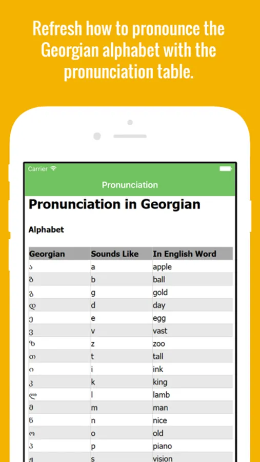 Refresh how to pronounce the Georgian alphabet with the pronunciation table.