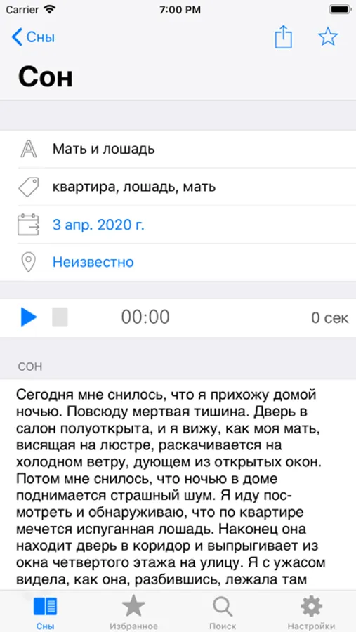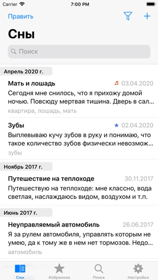 - Добавляйте интересные сны в избранное, чтобы иметь возможность быстро к ним вернуться.