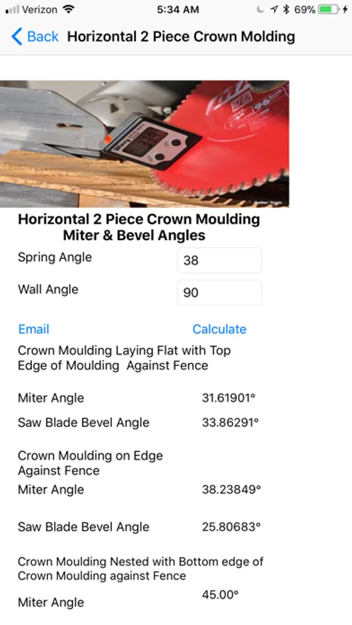 Email the Miter Angle and Saw Blade Bevel Angles to yourself or friends.