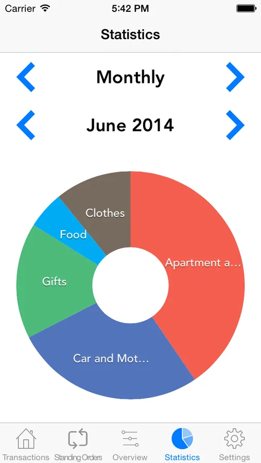 In addition you can view detailed statistics of your expense divided in categories.