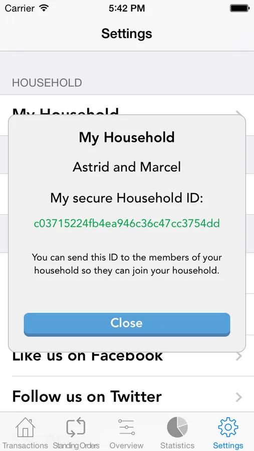 You have the possibility to create a household and share it with other members of your household to manage the incomes and expenses for a complete household with multiple users.