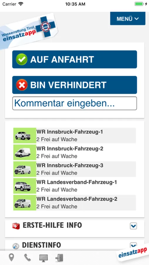 Es wird nach der Alarmierung der Status Auf Anfahrt oder Bin verhindert an die ÖWR-Tirol WebApp gesendet und die GPS Position festgehalten. Somit erhält jedes Mitglied im Einsatzpersonal dezentral Informationen über den Einsatz.
